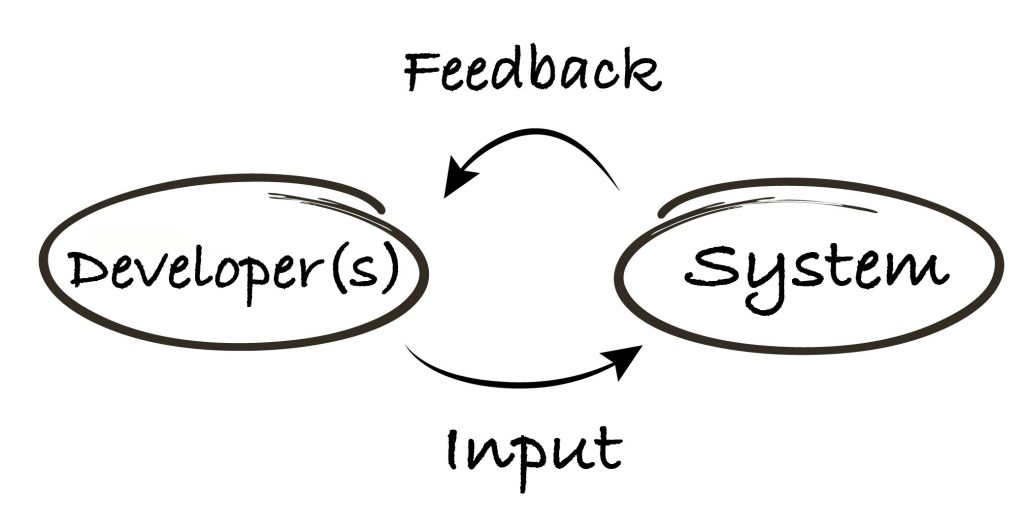 One of the most simple feedback loops is the one between a developer and a system or codebase: you add or adjust the code and (automated) testing tells you how you work affected the system or codebase.